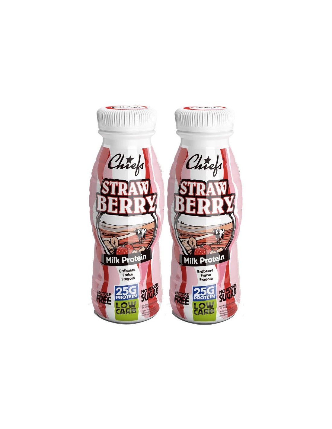 Ingrédients: 45% lait partiellement écrémé, eau, 7% concentré de protéines lactiques, 2% purée de fraises, stabilisant: gel de cellulose, gomme de cellulose; arômes naturels, acidifiant: diphosphate de potassium; colorant naturel: lycopène; édulcorants: sucralose, acésulfame K; sel comestible, lactase.